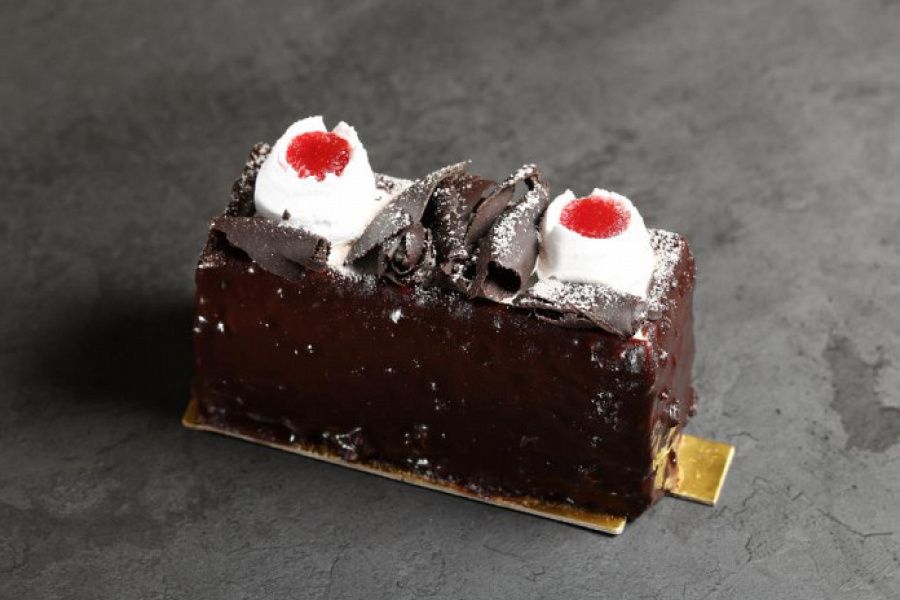 Rich chocolate cake layered with cherry compote & vanilla Chantilly cream.